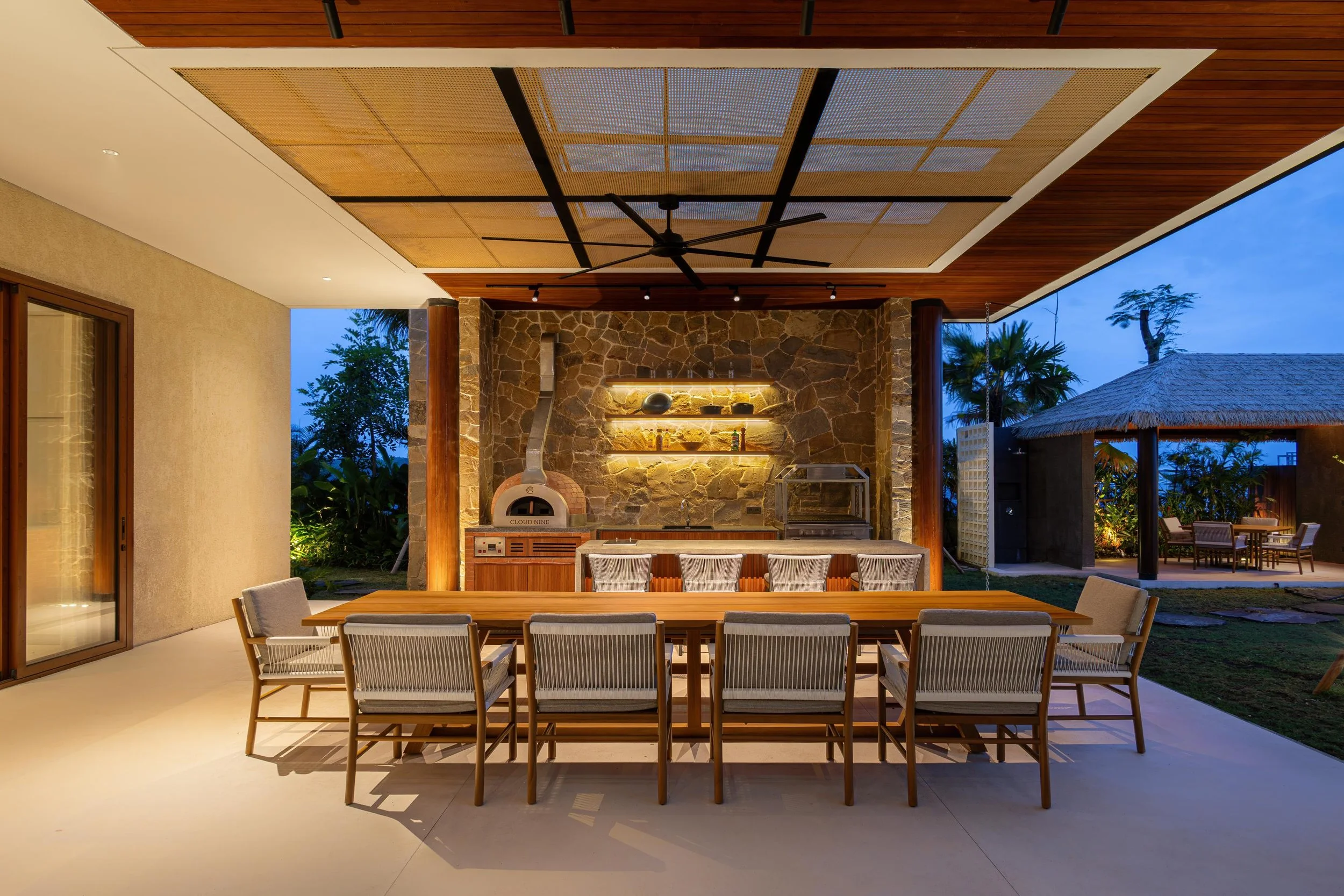 Cloud Nine Ungasan comes fully staffed — villa manager, private chef, gardeners, and butlers on hand. The villa also has a pizza oven, wood-fired grill, and outdoor speakers to set the mood.